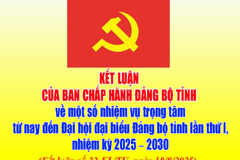 Ngày 18/8/2025, Ban Chấp hành Đảng bộ tỉnh đã ban hành Kết luận số 32-KL/TU về một số nhiệm vụ trọng tâm từ nay đến Đại hội đại biểu Đảng bộ tỉnh lần thứ I, nhiệm kỳ 2025-2030; Sổ tay đảng viên xin giới thiệu toàn văn Kết luận.